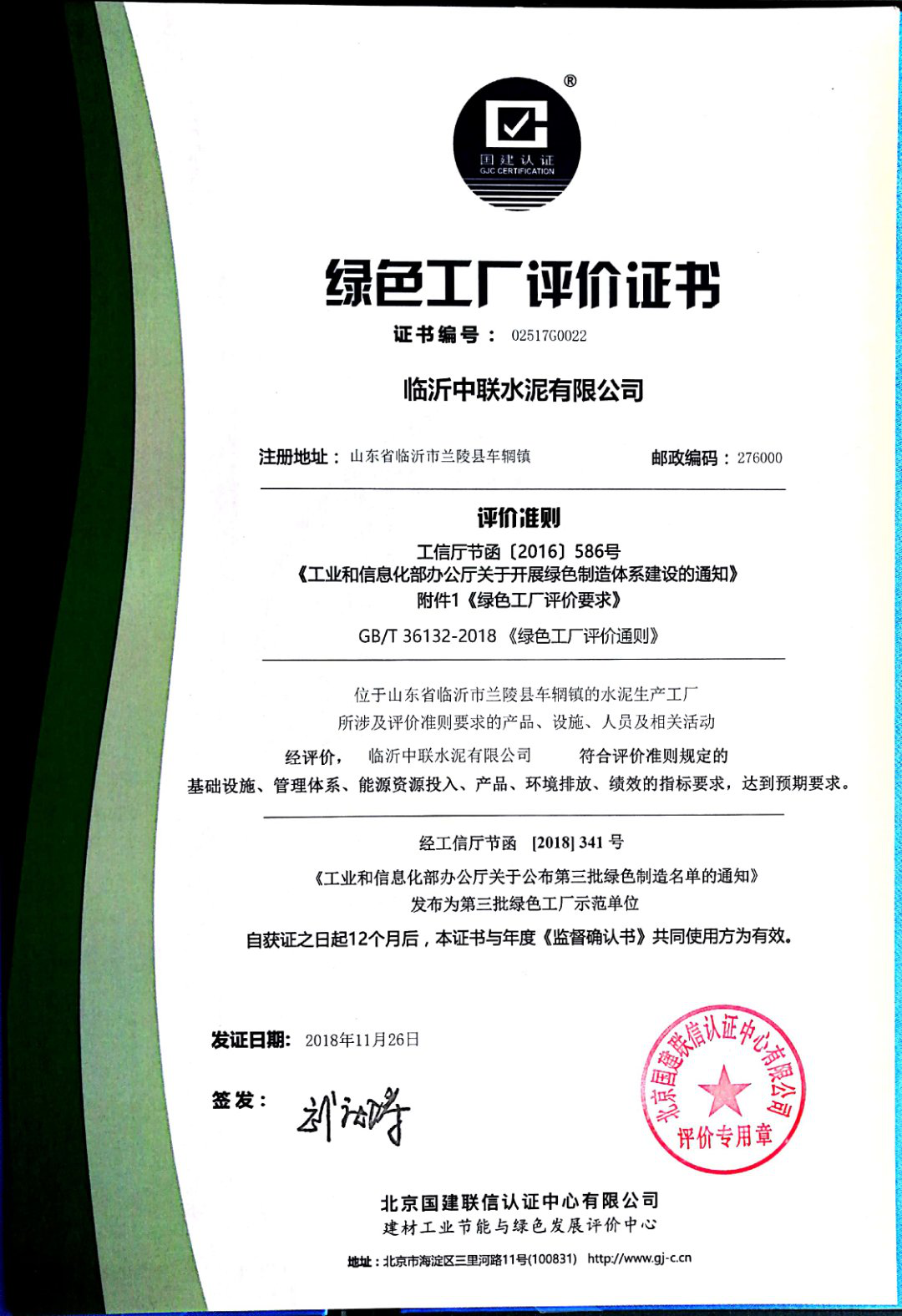 中國政府在實施制造強國戰(zhàn)略第一個十年的行動綱領(lǐng)《中國制造2025》中明確提出:“建設(shè)綠色工廠,實現(xiàn)廠房集約化、原料無害化、生產(chǎn)潔凈化、廢物資源化、能源低碳化”要求。公司緊跟國家發(fā)展戰(zhàn)略,高度重視綠色制造,于2018年10月成功入選為國家工信部認(rèn)定的第三批“綠色工廠”!